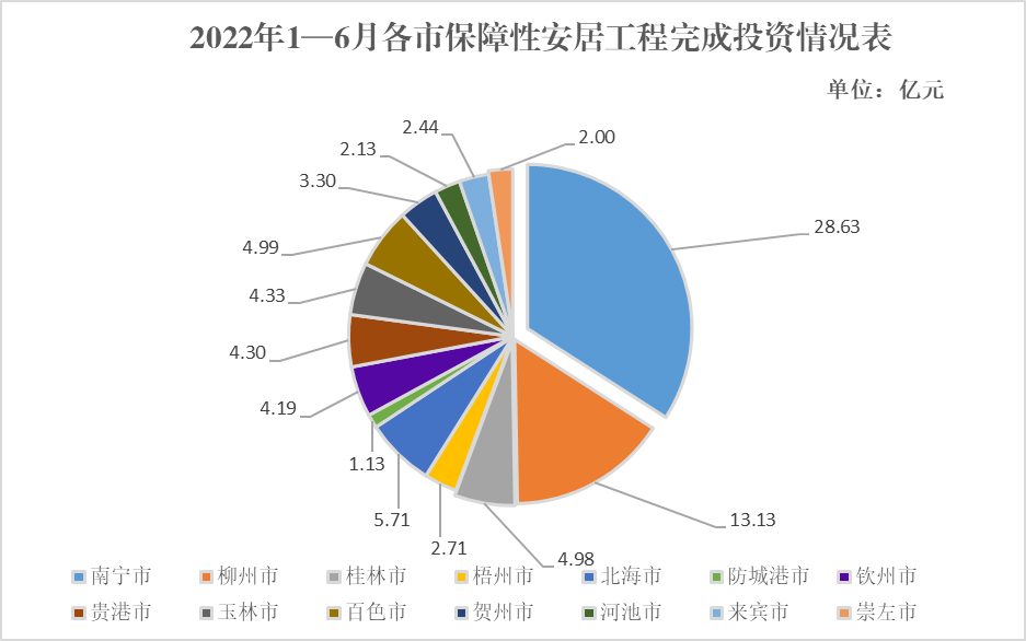 截至6月25日,全区保障性安居工程完成投资83.97亿元,环比增长19.33%。其中,城市棚户区改造完成投资71.88亿元,保障性租赁住房完成投资9.25亿元,公租房完成投资2.85亿元,有效发挥了保障性安居工程稳投资、增后劲的作用。